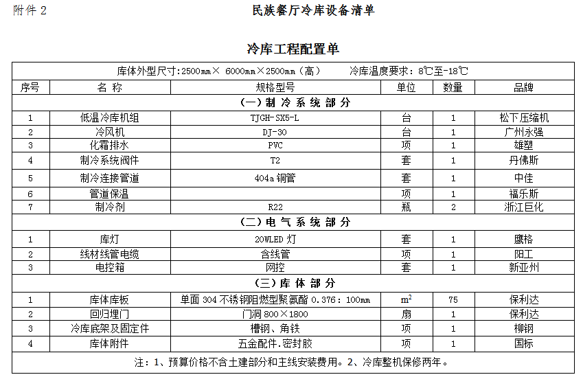 冷庫設備一批,具體參數(shù)詳見附件2;
