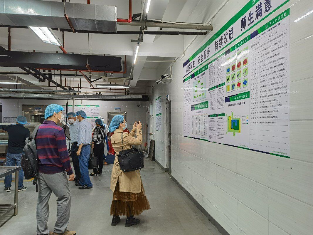 2021年4月26日下午,廣西廣投智慧物產(chǎn)商業(yè)管理有限公司執(zhí)行董事劉戰(zhàn)勝、副總經(jīng)理梁凱榮,廣西投資集團壁華物業(yè)有限公司執(zhí)行董事孔方、物業(yè)投資大廈項目辦主任黃萍,廣西廣投醫(yī)藥健康產(chǎn)業(yè)集團商旅運服專職辦副主任周茜等一行到我司考察交流,公司總經(jīng)理孔宇等領導出席座談。會上雙方就餐飲服務等工作進行了深入交流,會后參觀了我司食品檢測室、凈菜加工中心、秀苑餐廳、東苑餐廳等。