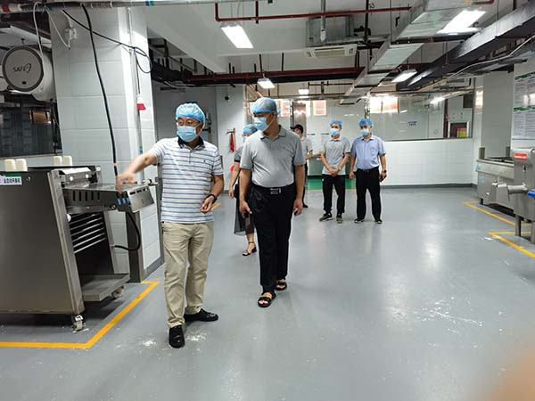 2021年5月18日上午,廣西建設(shè)職業(yè)技術(shù)學(xué)院王輝副處長一行3人到我司考察交流。王輝副處長一行人先與我司總經(jīng)理孔宇進行深入交流,隨后一同參觀了我司食品檢測室、凈菜加工中心、秀苑一餐廳等,詳細了解了我司食品檢測室檢測情況。