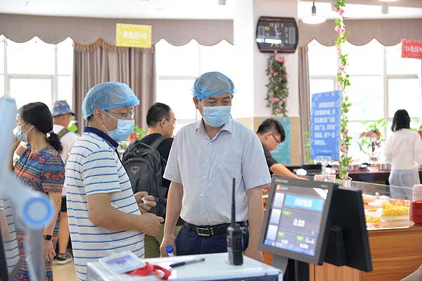廖建輝一行首先來到我司會議室開展座談,詳細了解我司的發(fā)展歷史、經(jīng)營管理理念及現(xiàn)有經(jīng)營業(yè)態(tài),深入了解我校后勤管理處與我司在有關機制上的關系。隨后,在我司總經(jīng)理孔宇、副總經(jīng)理唐亞瓊等領導的陪同下參觀了我司凈菜加工中心、秀苑餐廳、東苑餐廳、老水塔咖啡廳等地,?對我司在無水廚房、智慧餐廳、食品安全管理等方面的工作給予了充分的肯定,希望雙方能更深入交流管理經(jīng)驗,推動共同發(fā)展。
