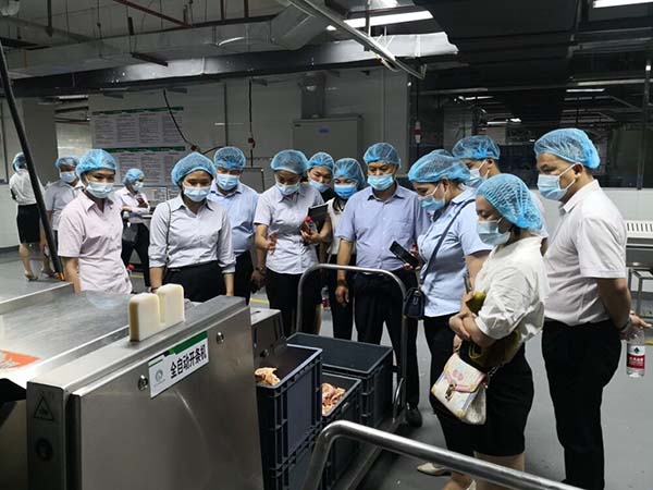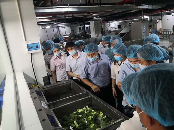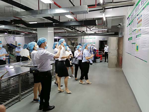 2021年5月31日下午,鮮而美餐飲公司一行17人到我公司參觀交流。在公司運(yùn)營(yíng)監(jiān)管部嚴(yán)壯云主任的陪同下參觀了食品檢測(cè)室、凈菜加工中心、秀苑餐廳等,并詳細(xì)了解我公司無(wú)水廚房建設(shè)情況。
