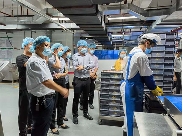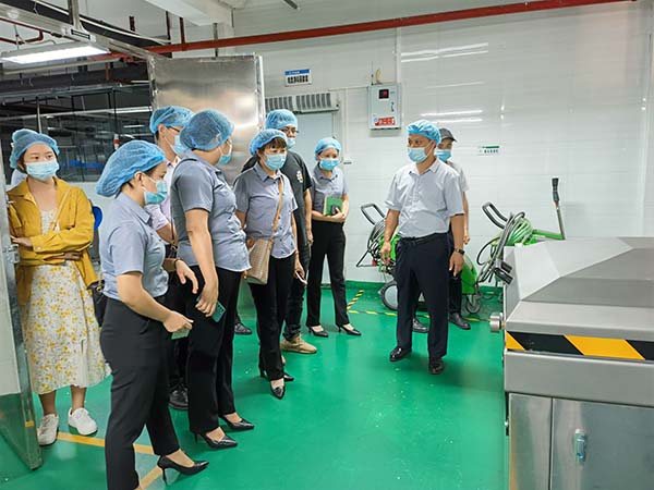 ?2021年7月5日下午,廣西泰林餐飲管理有限公司一行12人到我公司參觀交流,在運營監(jiān)管部主任嚴(yán)壯云的陪同下參觀了凈菜加工中心、食品檢測室、秀苑餐廳等。