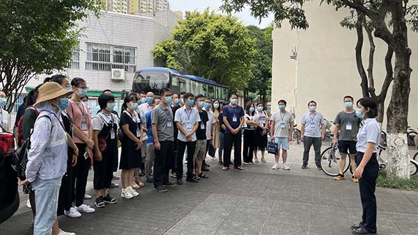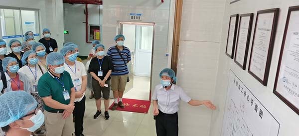2021年6月29日下午,橫縣市場(chǎng)監(jiān)督管理局80人來(lái)我公司參觀交流,在運(yùn)營(yíng)監(jiān)管部主任嚴(yán)壯云的陪同下分別參觀了凈菜加工中心、食品檢測(cè)室、秀苑餐廳等,詳細(xì)了解了我公司無(wú)水廚房建設(shè)情況。