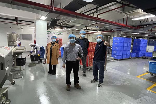潘總一行先后檢查了秀苑餐廳、凈菜加工中心、食品檢測(cè)室、樸誠(chéng)超市東校園店、西麥坊,東、西菜市場(chǎng)等場(chǎng)所,就物資儲(chǔ)備、衛(wèi)生環(huán)境、食品安全、經(jīng)營(yíng)情況等進(jìn)行了深入了解,并強(qiáng)調(diào)了一些常見問題的預(yù)防及建議。