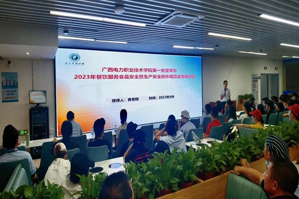 9月15日,由我公司托管經(jīng)營的廣西電力職業(yè)技術學院五象校區(qū)第一食堂開展秋季學期食品安全暨安全生產(chǎn)培訓會,食堂全體員工及各檔口相關負責人共160余人參加了培訓。