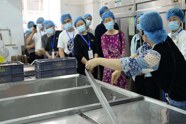 研討班一行參觀了凈菜加工中心和秀苑餐廳,對我公司所屬食堂餐飲從原材料到餐桌關(guān)鍵控制點(diǎn)的做法進(jìn)行了實(shí)地調(diào)研,對我公司在食堂后廚實(shí)行的“無水廚房”管理模式以及在食堂食品安全等方面的管理表示認(rèn)同和贊譽(yù)。