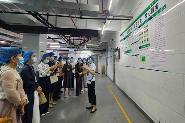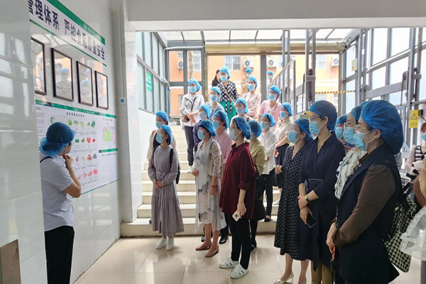 女工委員們?cè)跇阏\(chéng)公司安監(jiān)部工作人員的講解帶領(lǐng)下,分別參觀了食品檢測(cè)室、蔬菜清洗間、肉類切配間、食材儲(chǔ)存間、白案加工間、烹飪間、餐具洗消間等各個(gè)區(qū)域,詳細(xì)了解了樸誠(chéng)公司通過的五大體系認(rèn)證、食堂“明廚亮灶”系統(tǒng)建設(shè)、食堂員工操作規(guī)范、食堂公用具管理規(guī)范、食堂的原材料管理規(guī)范和食品加工制作流程及標(biāo)準(zhǔn)要求等。大家對(duì)學(xué)校食堂的食品安全管控、無水廚房建設(shè)表達(dá)高度認(rèn)可和贊譽(yù)。